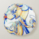 Almofada Redonda Tinta cortada no, imagem com mancha laranja, azul