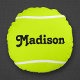 Um travesseiro decorativo redondo personalizável para jogadores tênis, com uma caixa de texto personalizada para digitar onde você pode digitar o que quiser - nome de um jogador tênis, nome de tênis ou nome de escola, ou qualquer outra coisa que você quiser! Você também poderia apagar o texto do marcador de posição e deixá-lo vazio para uma simples bola de tênis não marcada, que também parece muito legal, ou pegar ambos! Amantes de tênis podem jogá-lo na cama, ou trazê-lo junto no ônibus para torneios e fósforos de tênis. Faz um presente agradável e memorável para os jogadores de tênis, e seria um presente de graduação de excelente para mais velho de tênis de segundo grau ou faculdade!