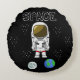 Este travesseiro é perfeito para qualquer um que ama o espaço! Representando um astronauta com corações estelares ao seu redor e planetas embaixo. O design é limpo e criativo. Perfeito para um futuro astronauta ou apenas uma decoração bonita.