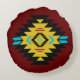 Um impressão geométrico num travesseiro decorativo redondo macio