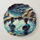 Um design travesseiro, mostrando um casal bonito relaxando em um tradicional japonês ao ar livre na neve.