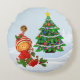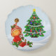 Decore sua casa nesta época de festas com esta almofada redonda de acento festivo. Com uma adorável ilustração de um elfo de Natal e uma árvore de pinheiro com bolas coloridas, e pequenas luzes coloridas e estrelas em uma impressão de decoração em um fundo de paisagem de inverno, certamente dará à sua casa um clima festivo.