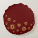 O travesseiro redondo moderno apresenta um design orgânico de starburst em uma paleta burgundy e dourada. Estrelas de ouro e cobre cintilantes sobre fundo de burlagem, cada estouro apresenta uma estrela de ouro claro sobreposta por um estouro de cobre cintilante maior. Um simples travesseiro redondo moderno que fará uma adição na moda à sua sala de estar ou ao seu sofá de sala de estar, travesseiro de sotaque minimalista para o seu quarto ou cadeira favorita, ou um simples presente moderno.