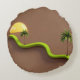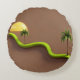 Featuring a minimalist 3D-style illustration with smooth curves, warm sunset tones, and fresh green accents, this throw pillow is perfect for adding a relaxed beach feel to your living room, bedroom, or cozy corner.