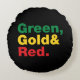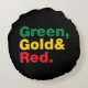 Almofada Redonda Verde, Dourado e Vermelho.