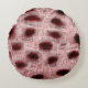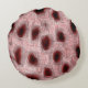 Esse gráfico digitalizado, projetado, tem um padrão, pontos pretos, com bordas vermelhas, contra fundo gravado, rosa, vermelho, preto e branco.