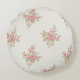Um belo anúncio de roupas femininas, antigo, com pequenas rosas cor-de-rosa, ganha a frente deste travesseiro redondo de algodão, e um padrão floral rosa delicadamente bonito com pequenas bolinhas brancas aparece no verso. Maravilhoso para fãs do país francês, chique e vintage!