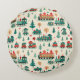 Um travesseiro decorativo de Natal bonito com trens antigos em cores como turquesa e vermelho-tijolo.