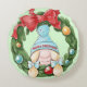 Menina de gnomo na coroa de água de Natal com arco vermelho e luzes coloridas