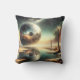 Essa esfera metálica surrealista e intacta reflete uma paisagem apocalíptica do deserto do barão, com mortos, fogo e fumaça.