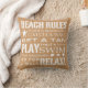 Travesseiro reversível em duas máscaras arenosas de tan e de marrom em cada rotulação do lado e do divertimento no branco. Alista as regras da praia para que todos siga! Dos sandcastles da construção à pesquisa por seashells, a ordem do dia é RELAXAR! Disponível em uma variedade de cores.