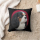 Este é um quadrado, travesseiro do preto que caracteriza uma fotografia original, oval de um Spaniel de rei descuidado Charles da tri cor bonita