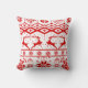 Uma rena de malha vermelha e flocos de neve em fundo branco. Modelo de travesseiro decorativo personalizável