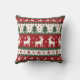 Featuring a festive knit-style pattern of red reindeer, green trees, and white snowflakes, this pillow brings warm holiday vibes to any space.