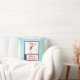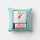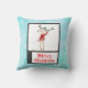 Travesseiro com uma bela ilustração branca de uma rena de Natal engraçada num suéter feio, perfeito para o feriado. Ele está de pé em duas pernas e balançando olá. Ele tem grandes galhadas e um boné de inverno verde e bonito. O texto abaixo diz Feliz Natal em letra manuscrita, em cor vermelha festiva. O fundo é um design de cor d'água com aspecto gelado azul.