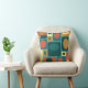 Este padrão de abstrato retroinspirado tem um fundo de turquesa e vários tamanhos de retângulos em amarelo e laranja.