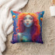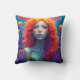 Retrato de uma garota com Cushion laranja. Cores vivas com laranja e azul em um belo excelente de travesseiro para qualquer quarto.