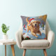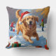 Almofada Retriever ouro em neve com chapéu de Natal