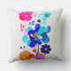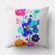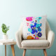 Instantly transform your living room sofa, reading chair, or bedroom into a vibrant, creative sanctuary with this breathtaking abstract floral throw pillow. The artwork features a stunning, vertical arrangement of fluid, psychedelic flowers. The highly saturated, translucent overlapping petals in shades of bright magenta, cyan, and deep blue create a mesmerizing visual depth against the crisp, white canvas-textured background.