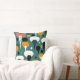 Infuse your home with the playful, "Googie" aesthetic of the 1950s with this "Retro Shapes" throw pillow. Featuring stylized, mushroom-like silhouettes and floating atomic orbs, this design captures the optimistic energy of the space age. The vibrant palette of ochre yellow, muted coral, and crisp white pops against a sophisticated deep teal background, while sharp black accents provide a bold graphic contrast. This whimsical yet refined pattern is a perfect conversation piece for any mid-century modern lounge or creative studio.