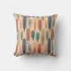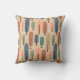 Este travesseiro decorativo tem um design moderno do século médio de longas ovais em cor de pêssego, verde, azul, lacrimogêneo e castanho claro com linhas pretas com círculos nas extremidades.