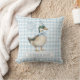 Este travesseiro decorativo inspirado retroativamente apresenta um adorável pato vestido com um chapéu de festa e gravata arco, segurando um balão branco. O fundo de gingham azul-bebê macio adiciona um olhar confortável e rústico.