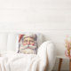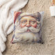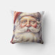 Um travesseiro com uma ilustração de estilo vintage. Um retrato de Papais noeis com sua grande barba branca vestindo seu clássico chapéu vermelho de Papai Noel.
