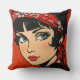Uma bela ilustração de mulher rockabilly em um travesseiro decorativo. Acelere a sua casa de chic com este travesseiro retrô.