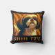 Retro-style Shih Tzu, em tons ousados e quentes, realçando o casaco fluido da raça, o focinho curto e os olhosos olhos escuros. Originando-se como um companheiro apreciado nos tribunais imperiais chineses, o Shih Tzu é conhecido pela sua natureza afetuosa, charme brincalhão e presença real apesar do seu pequeno tamanho.