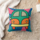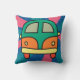 Design de travesseiro decorativo brilhante e divertido, com uma carrinha retrô em cores vibrantes num fundo psicodélico. Perfeito para adicionar um toque de nostalgia e vibrações hippie a qualquer espaço.