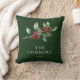 O Travesseiro decorativo Botânico Reversível de Natal Elegante Verde apresenta uma bela ilustração em aquarela de verde sazonal e bagas sagradas, juntamente com o tipo elegante.