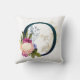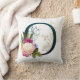 Travesseiro decorativo apresenta flores de rico que incluem folhas de ouro, rosa púrpura e flores silvestres azuis em letras grandes / iniciais O.