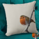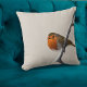 Um assaltante britânico sentou-se num galho de inverno nevado neste travesseiro bege. Você pode mudar a cor do plano de fundo pressionando o botão personalizar para se adequar à sua decoração doméstica.