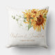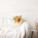 Este travesseiro romântico de manutenção de casamento apresenta um design floral. O fundo é um branco simples e elegante, com flores solares de ouro aquarela. No topo, figura um delicado buquê selvagem, com os nomes do casal impressos abaixo.