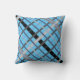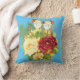 Travesseiro versátil com fundo azul que tem flores de um lado e design xadrez do outro.