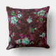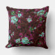 Rosas de Aqua e folhagem de fushia num fundo de burgundy.