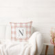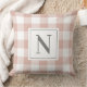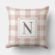 O travesseiro decorativo neutro do estilo da fazenda apresenta um padrão clássico, moderno e tradicional, cor-de-rosa-rosa e gingham-branco, de verificação do padrão de xadrez com o monograma da família personalizado, design inicial, que pode ser personalizado em ambos os lados do travesseiro. Nota, o texto da cinza de carvão e a cor de fundo rosa-rosa podem ser personalizados para coordenar com o decorador doméstico.