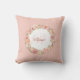 Um rosa e um ouro macios românticos do FALSO coloriram o travesseiro decorativo do quadrado do teste padrão de bolinhas com uma grinalda floral do rosa elegante. Personalizou este design feminino adicionando sua inicial conhecida e monogrammed. Aperfeiçoe para adicionar um toque feminino a toda a sala. Imagem impressa do plano, ouro nao real.