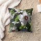 Um travesseiro com uma foto de um Rosa de Sharon.