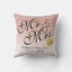 Rosa personalizado Dourado Glitter Dourado Coração Sr. e Sra. Wedding Travesseiro decorativo. Design por Elke Clarke©. Disponível em www.zazzle.com/monogramgallery. Clássico, personalizado, você pode mudar a cor do texto (efeito fotográfico impresso falso papel de folha de ouro e brilho), personalizável com nomes de noiva e noivo na fonte do script preto e na data do casamento. Bela design é perfeita para presentes de casamento, travesseiros queridos, presentes de aniversário de casamento e muito mais. Use o menu editar para alterar as cores ou visite nossa loja para obter mais designs e opções de cor.