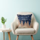 "Almofada de Arremesso Rosa Dourado Naval Brilho Floresta de Inverno Mr e Mrs." Fundo de madeira lavado com azul naval rico em aquarela com árvores da floresta em rosa e brilho dourado sobre uma encosta nevada com três cervos e flocos de neve estilizados. Todas as artes criadas pela artista e designer licenciada internacionalmente, Audrey Jeanne Roberts, direitos autorais reservados.