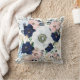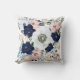 Este travesseiro foi projetado com um padrão vintage de rosa floral em tons de azul e rosa do marinho.