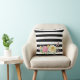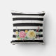 Adicione um toque de chic moderno à sua decoração com este travesseiro decorativo preto-e-branco, preto-e-branco, listrado, decorado com rosas românticas, rosa e amarelas. Personalize este lindo design floral listrado adicionando seu nome.