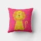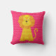Bonito, giro, colorido, ousado, moderno descreve este travesseiro decorativo modelado de tiras de fêmur cor-de-rosa e cor-de-rosa profundo com um leão listrado de ouro vestindo uma coroa de ouro em cada lado!