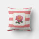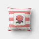 Elegante rosa rosa em travesseiro decorativo listrado rosa e branco. Uma bela rosa para alimentar seu espírito!