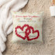 Este belo travesseiro comemora o dia em que você estava noivo ou se casou. Dois corações vermelhos feitos de rosas juntam-se com a dentro de "Juntos para Sempre". Você personaliza-o acima com seus nomes e datas. O fundo tem rosas bonito e pálidos espalhados. Seria um presente tão comovente para um casal recém-noivo ou casado.