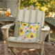 Girassóis e rosas cor-de-rosa, lindos e na moda, ao estilo do boho, no travesseiro marinho de decorador ao ar livre para a sua varanda ou para os seus móveis de pátio. Esta é uma bela design de primavera ou verão para adicionar um pop de cor divertido ao seu ar livre. Este impressão também pode ser comprado para o seu mobiliário interior.