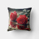 Duas rosas vermelhas vibrantes com gotas de chuva em suas pétalas sobre um pavimento molhado na chuva