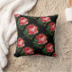 Design floral elegante, colorido, rosas de repolho cor-de-rosa vermelho com folhas verdes sobre fundo preto.