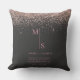 Add a touch of sparkle and romance to your home with this elegant personalized throw pillow featuring a luxurious rose gold, blush pink, and silver glitter script design. Set against a chic dark background, this custom cushion beautifully showcases the couple’s initials and names, making it a meaningful keepsake for weddings, anniversaries, or newlywed celebrations.
